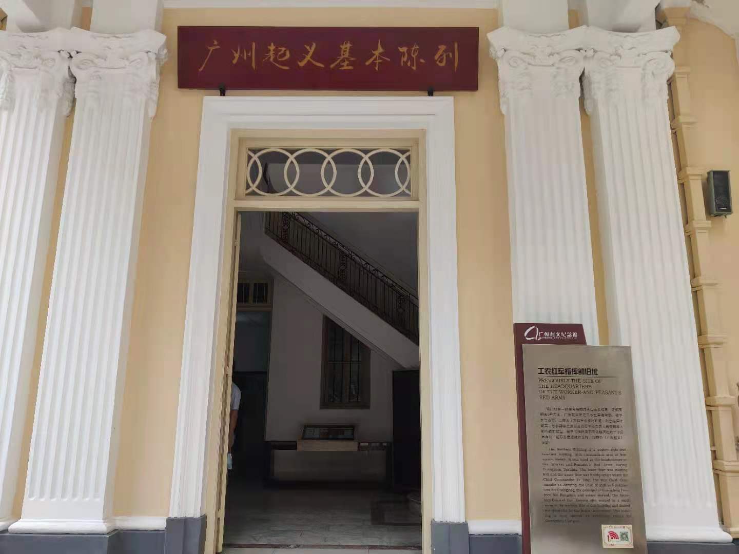 廣州起義紀念館為紀念中國第一個蘇維埃政府——廣州公社而設立。館舍為廣州公社舊址,面積約5000平方米。1987年成立紀念館,由葉劍英題寫館名。現存文物建筑有:蘇維埃政府辦公地方(中樓),起義指揮部(北樓),警衛連宿舍、彈藥庫(南樓),以及監獄、拘留所等。中樓被辟為廣州起義史料輔助陳列,并復原張太雷辦公室等。