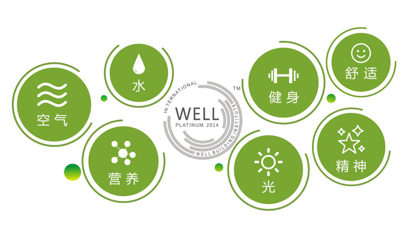 1.WELL 是一個基于性能的系統,它測量、認證和監測空氣、水、營養、光線、健康、舒適和精神等建筑環境特征,是LEED等綠色建筑評分系統的強有力補充。 這七大類別真正從身體到心理全方位健康的評估。同時在一些得分點,還考慮到了殘障人士、身體狀況特殊(如食物過敏)人士的需求,充分體現 WELL 認證體系的人文關懷。