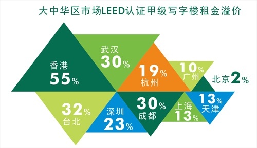 除了以上的優點之外,據調查LEED認證寫字樓對國際化企業的吸引力高于非LEED認證寫字樓的1-1.5倍。其租金溢價率也普遍高出10%-30%,因此從租金、出租率、吸引優質租戶等多方便都證明了獲得了LEED認證的寫字樓的競爭力。這也是為什么LEED認證如此受企業追捧的原因。