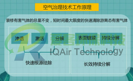 總的來說空氣治理的原理就是在無光的條件下催化空氣里面的水和氧氣發生氧化還原反應,產生具有強氧化里的氫氧游離子,正是氫氧游離子的作用起到了分解,甲醛、苯、氨、TVOC等有機化合物,同時起到抗菌、防霉、除臭、防污親水自潔等效果。它本身是一種催化劑,在反應前和反應后物質并不減少,一次性治理后,長效解決室內空氣污染,是空氣每天24小時都清新自然。
