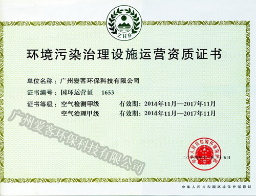 環境污染治理設施運營資質證書