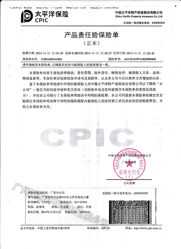 太平洋保險(xiǎn)承保