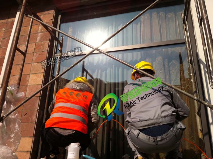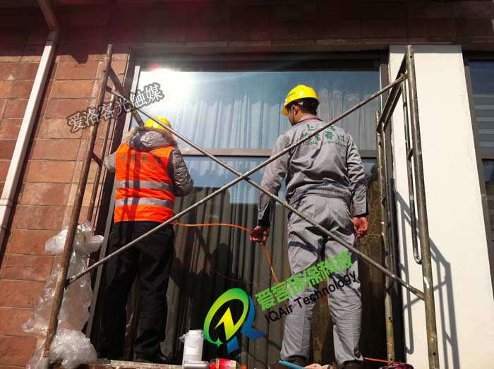 案例名稱:廣州某玻璃墻面自潔工程施工現(xiàn)場(chǎng)