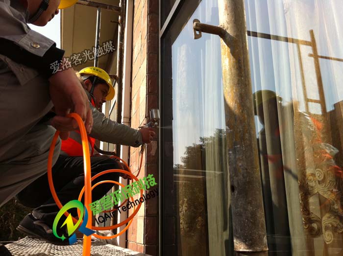 施工方法:采用口徑為0.4的噴槍進(jìn)行噴涂施工。