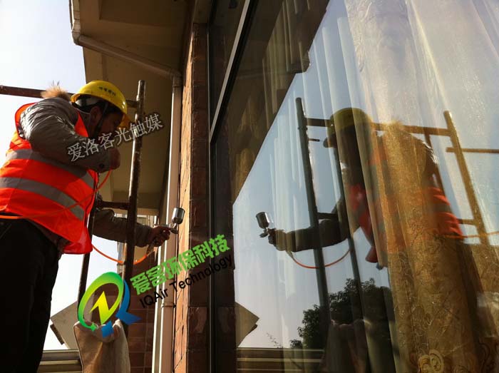 廣州某玻璃墻面自潔工程施工現(xiàn)場(chǎng)